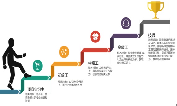 钳工、焊工、高压电工、低压电工特种作业证和高处作业操作证等职业资格证书。