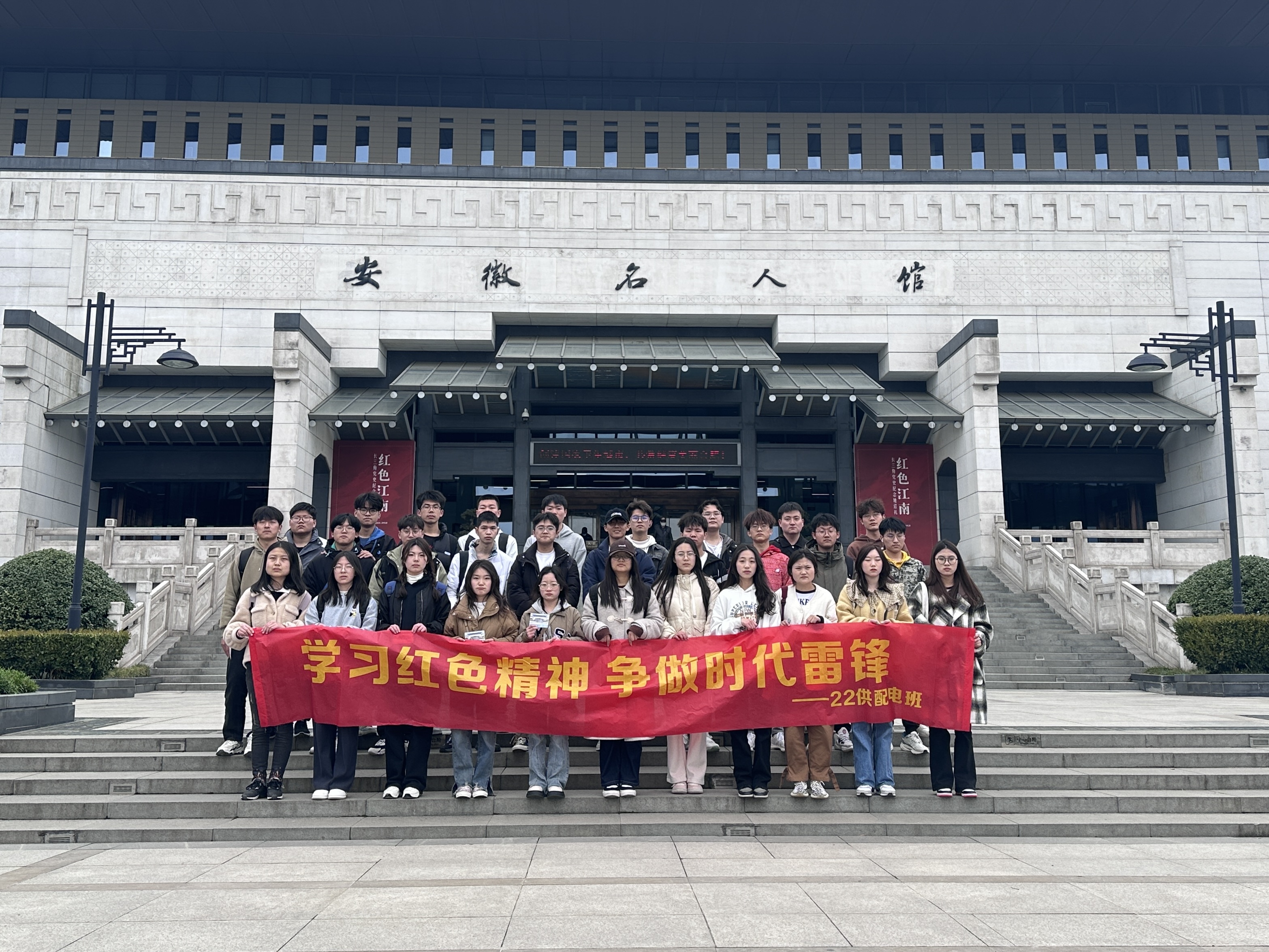 为缅怀革命先烈的红色精神和英勇事迹,大力弘扬革命精神和爱国主义精神,3月25日,在雷锋月与清明节的交汇之际,Ky开元集团 22 级城轨供配电班开展了“学习红色精神 争做时代雷锋”的社会实践活动,参观爱国主义教育基地,感受红色文化,缅怀革命先烈。同学们前往渡江战役纪念馆及安徽名人馆进行红色学习活动,沿着习近平总书记考察时的足迹,重温习近平总书记重要讲话指示精神。